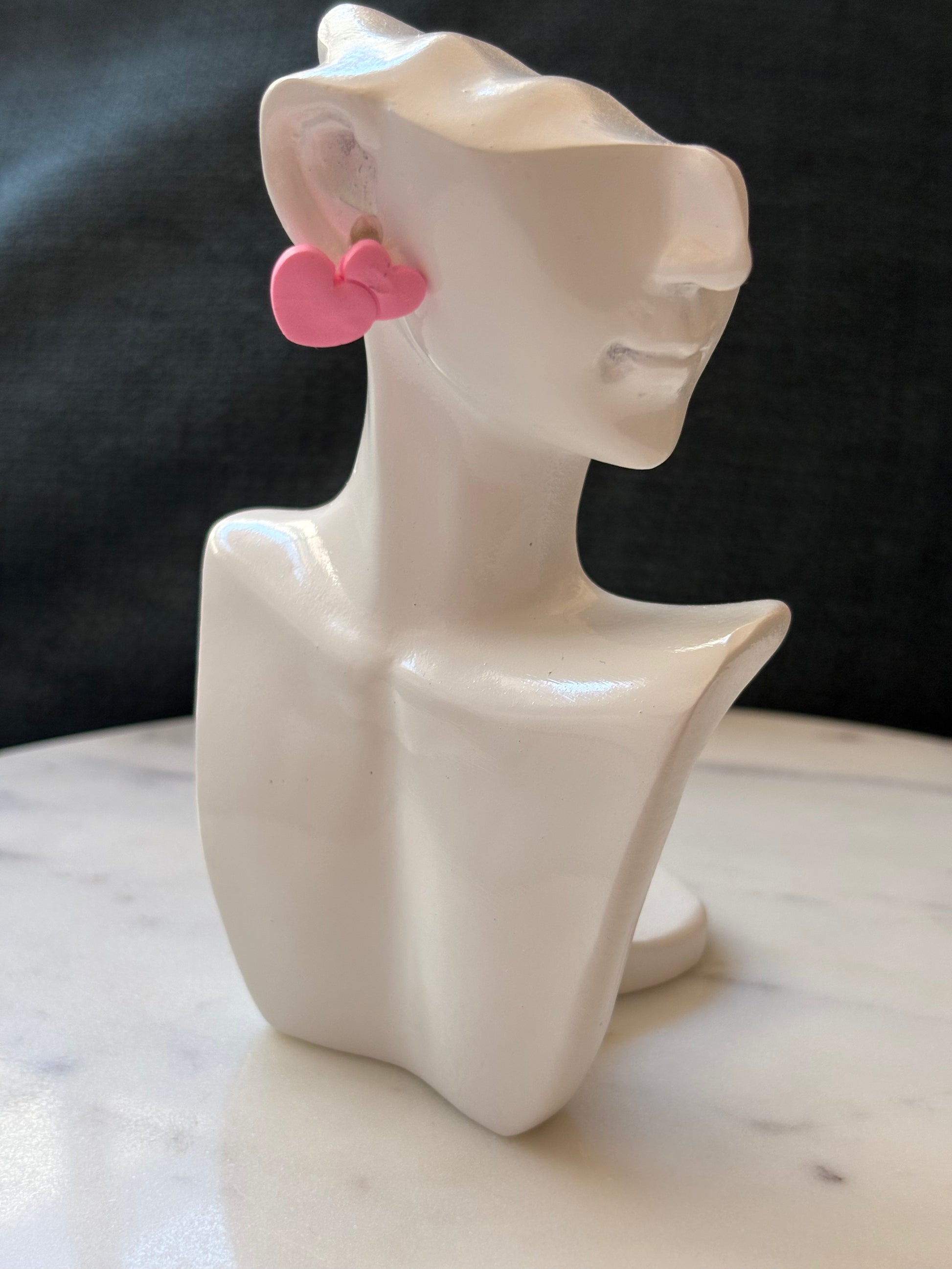 Pink Double Heart Gold Stud Earrings