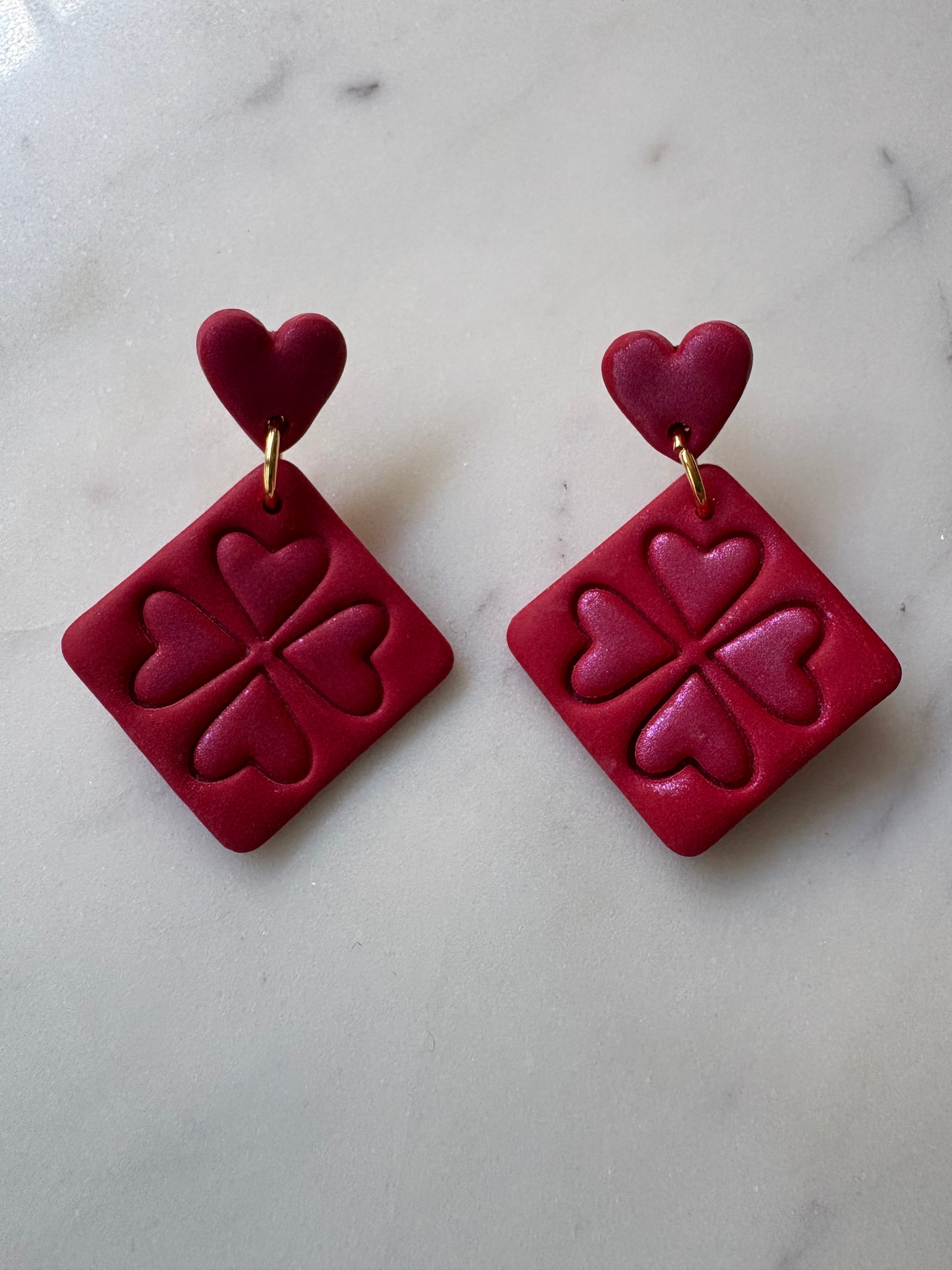 Shimmering Heart on 4 Hearts Squared Dangle Stud Earrings