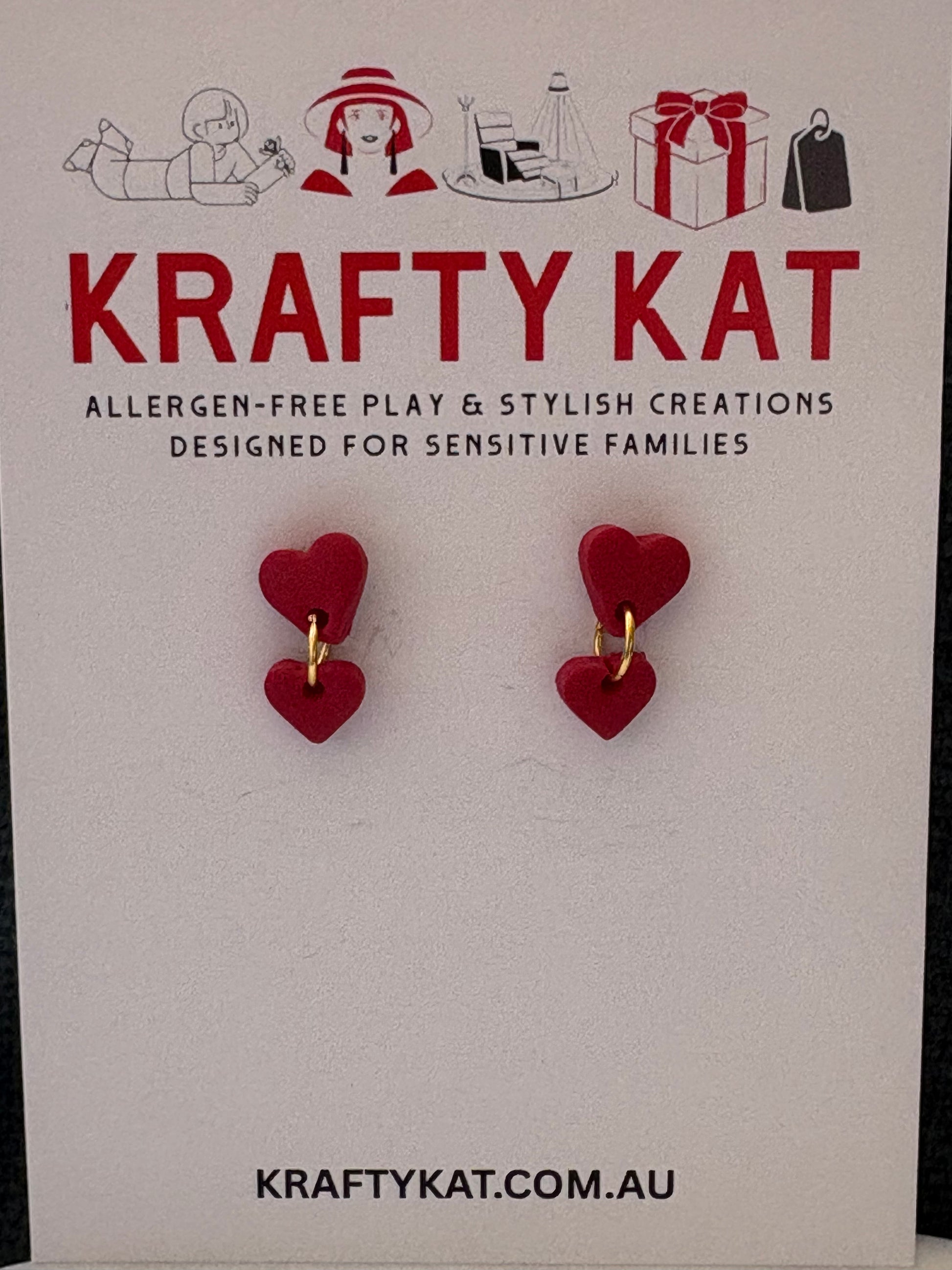 Small Heart with Mini Heart Dangle Gold Stud Earrings